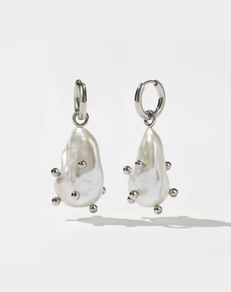 The primness of pearls meets the uniformity of metal meets the unfussiness and fluidity of a simple bow form. Nostalgic in mood but modern in form.