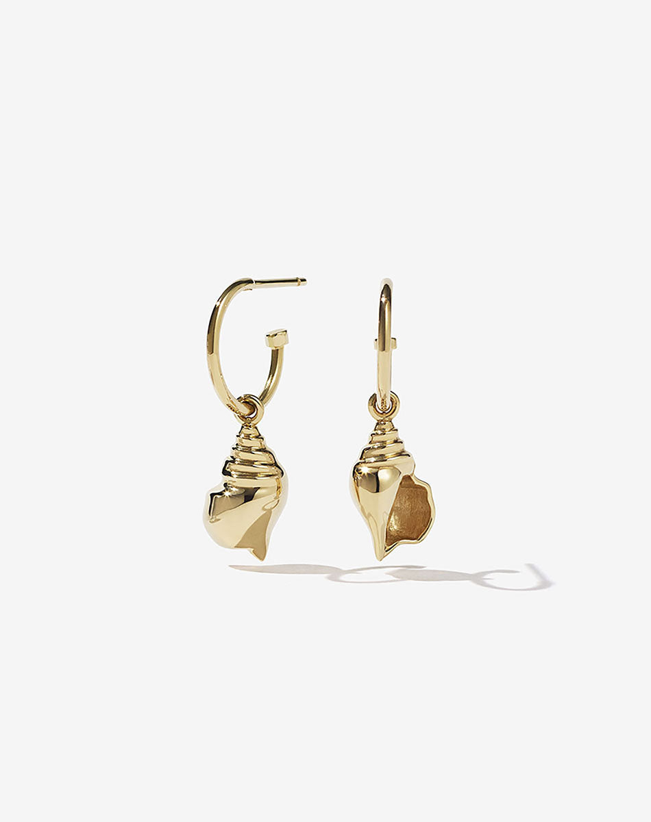 A small and intricately-sculpted conch shell in stud form. Representing courage, power and exploration – a protective talisman for the traveller, the water baby, and the everyday adventurer.