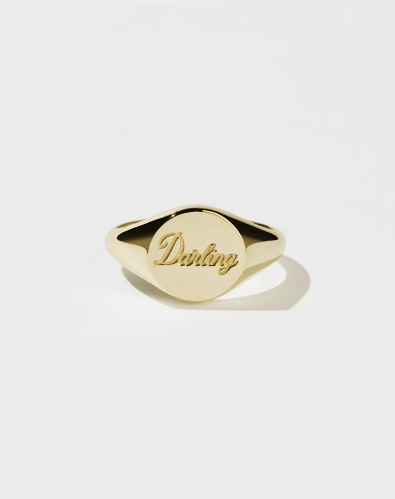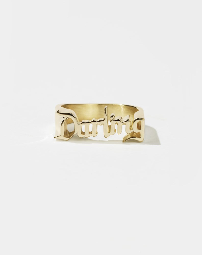 Made in collaboration with Darling on Drake. A flat top knuckle duster style ring in the Darling cursive style logo.