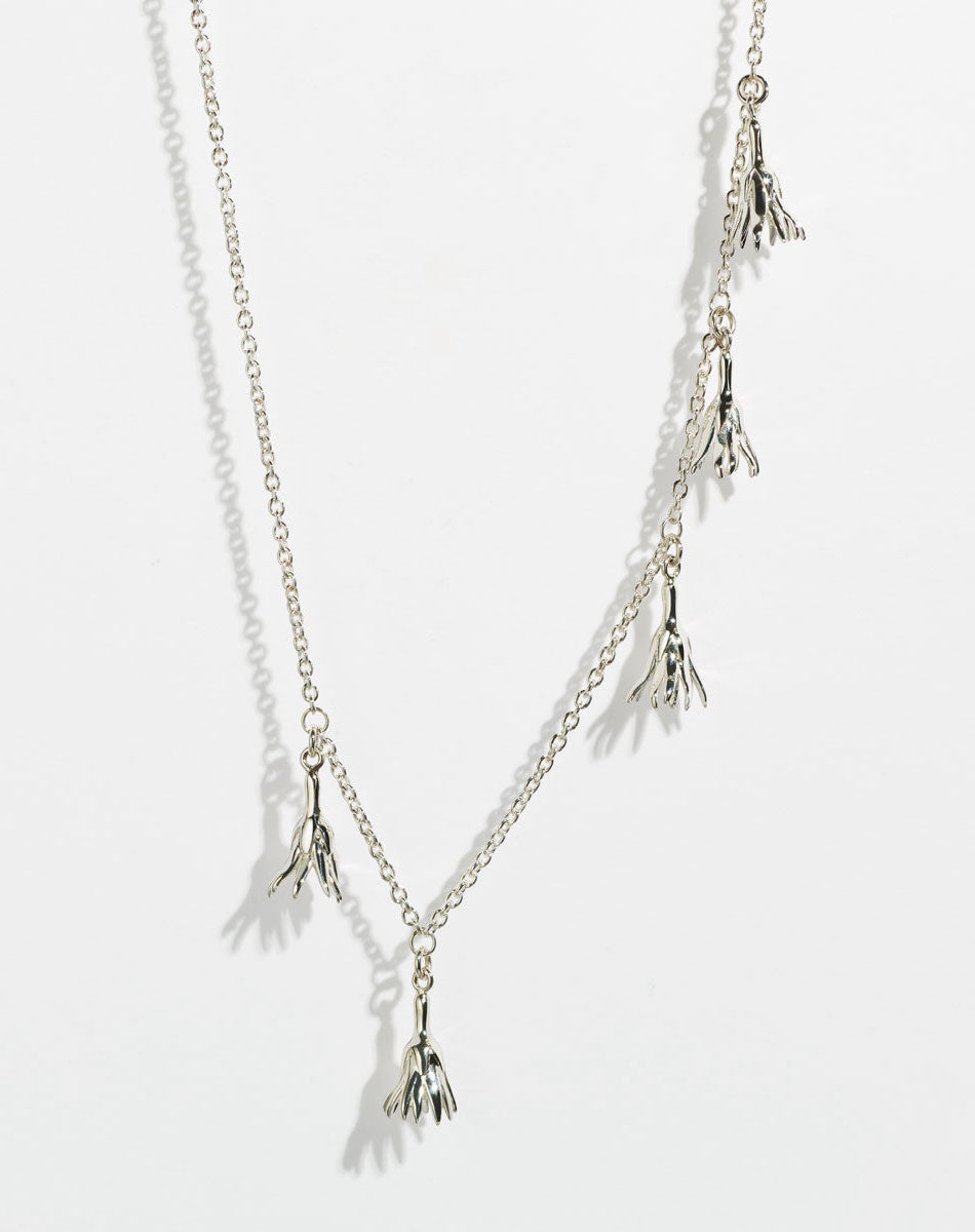 Two finely crafted bell-flower charms hang in gentle harmony, a minimalist ode to blooming and the enduring cycles of life.
