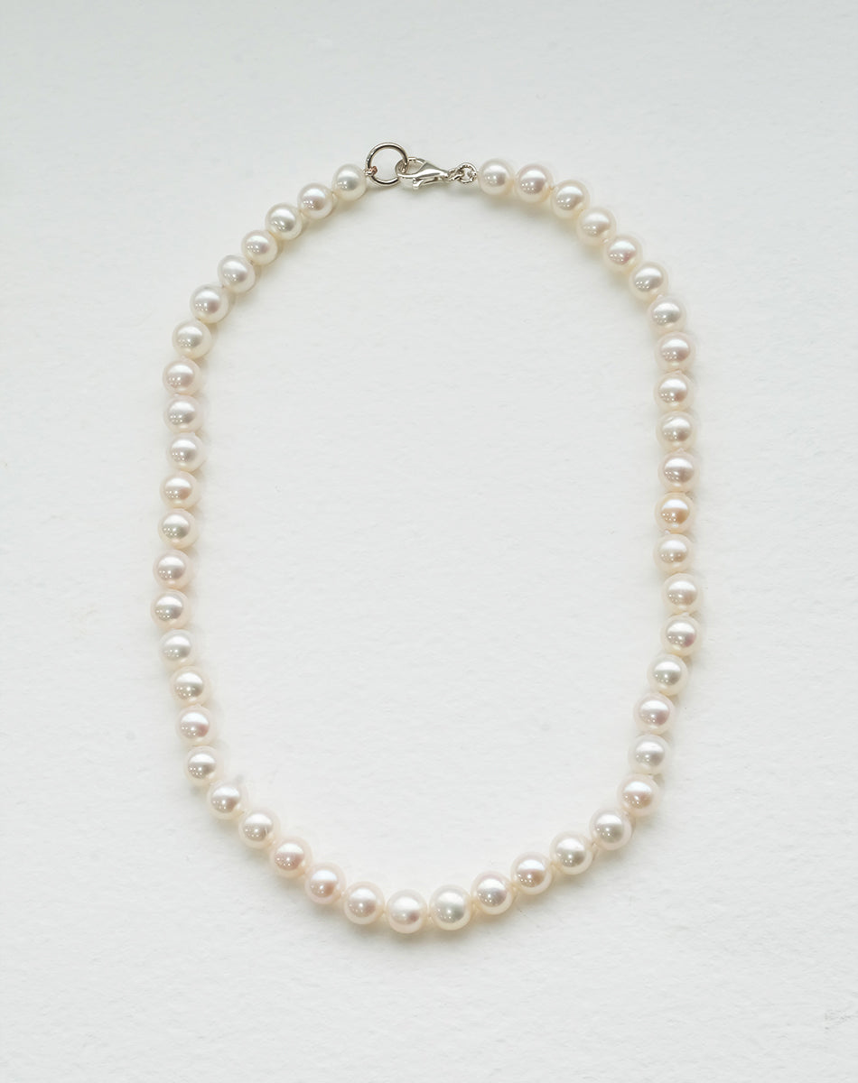 A limited edition release of classic round pearls. Freshwater pearls strung on a delicate silk thread with classical knotting separating each pearl.