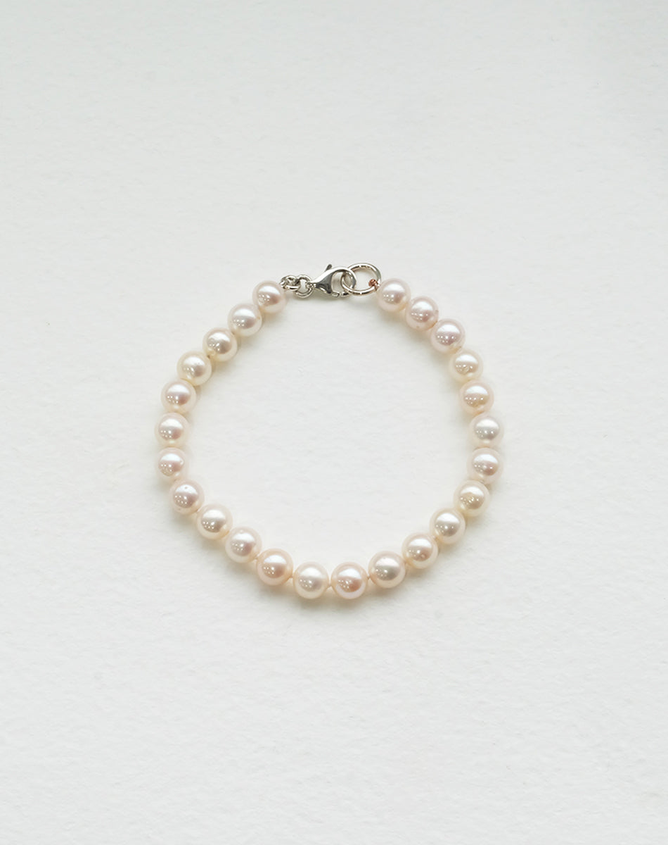 A limited edition release of classic round pearls. Freshwater pearls strung on a delicate silk thread with classical knotting separating each pearl.