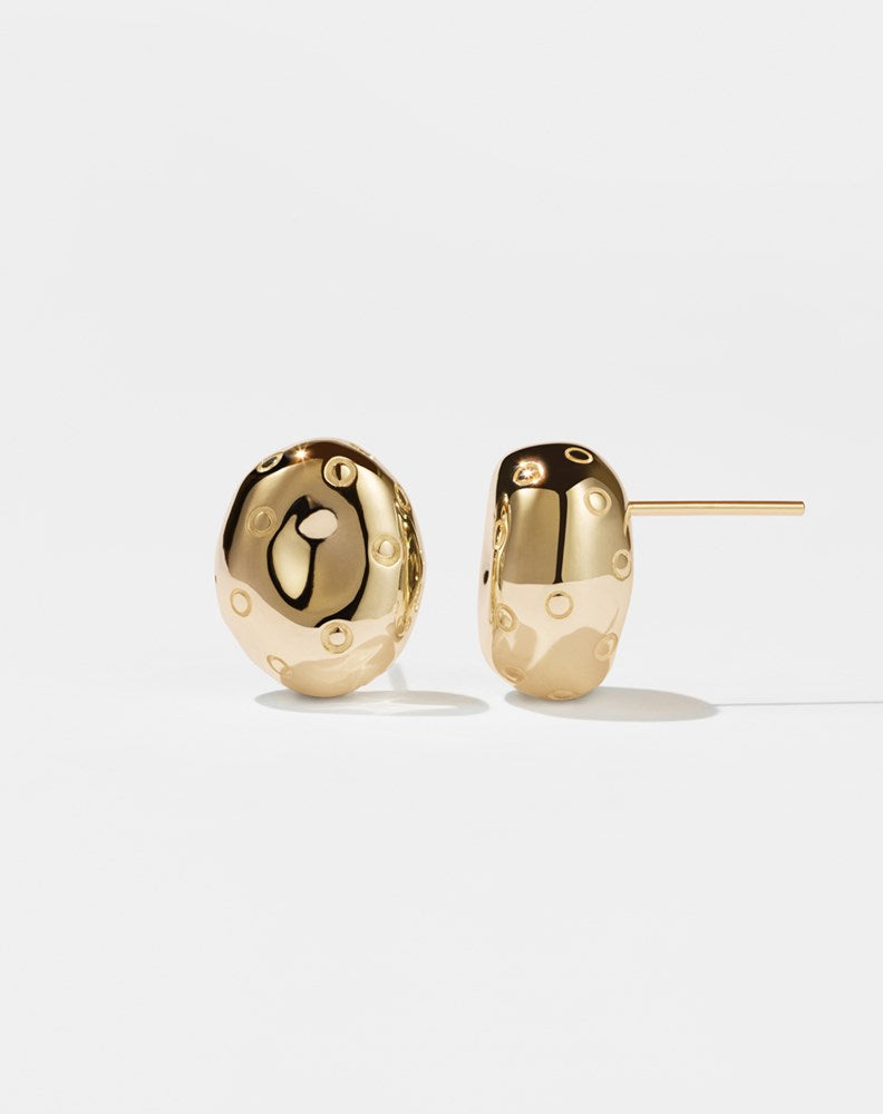 An abstract strawberry shaped pendant. Designed as if looking down from the top where the leaves have been freshly picked. Suspended on a 50cm chain which is adjustable to 45cm. Looks great alone or layered with the large strawberry necklace. The pendant measures approximately 13mm x 16mm.