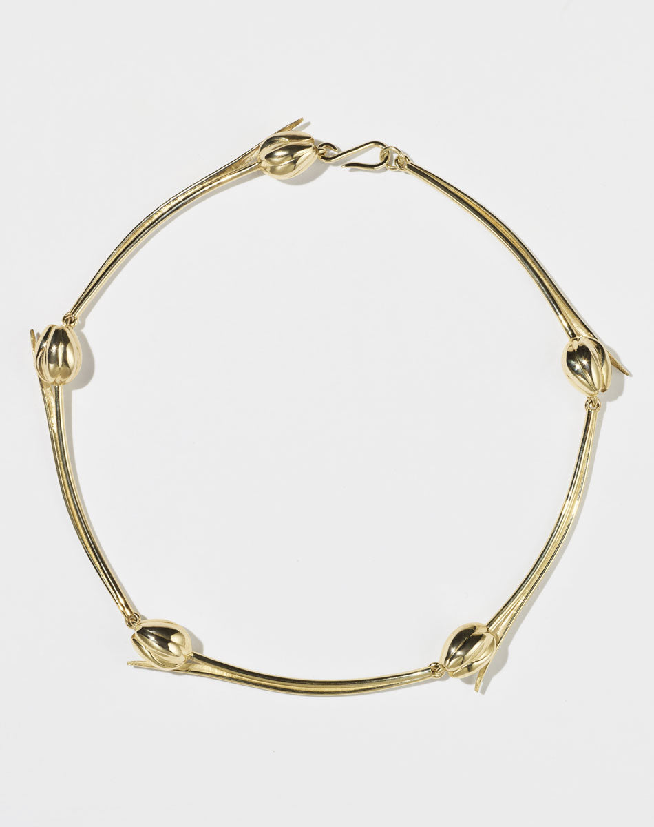Closed tulip charms suspended from hinged Aria hoops. Minimal and considered, these earrings offer a soft botanical accent that feels timeless and personal. Designed to be worn effortlessly, they bring gentle symbolism to an everyday essential.
